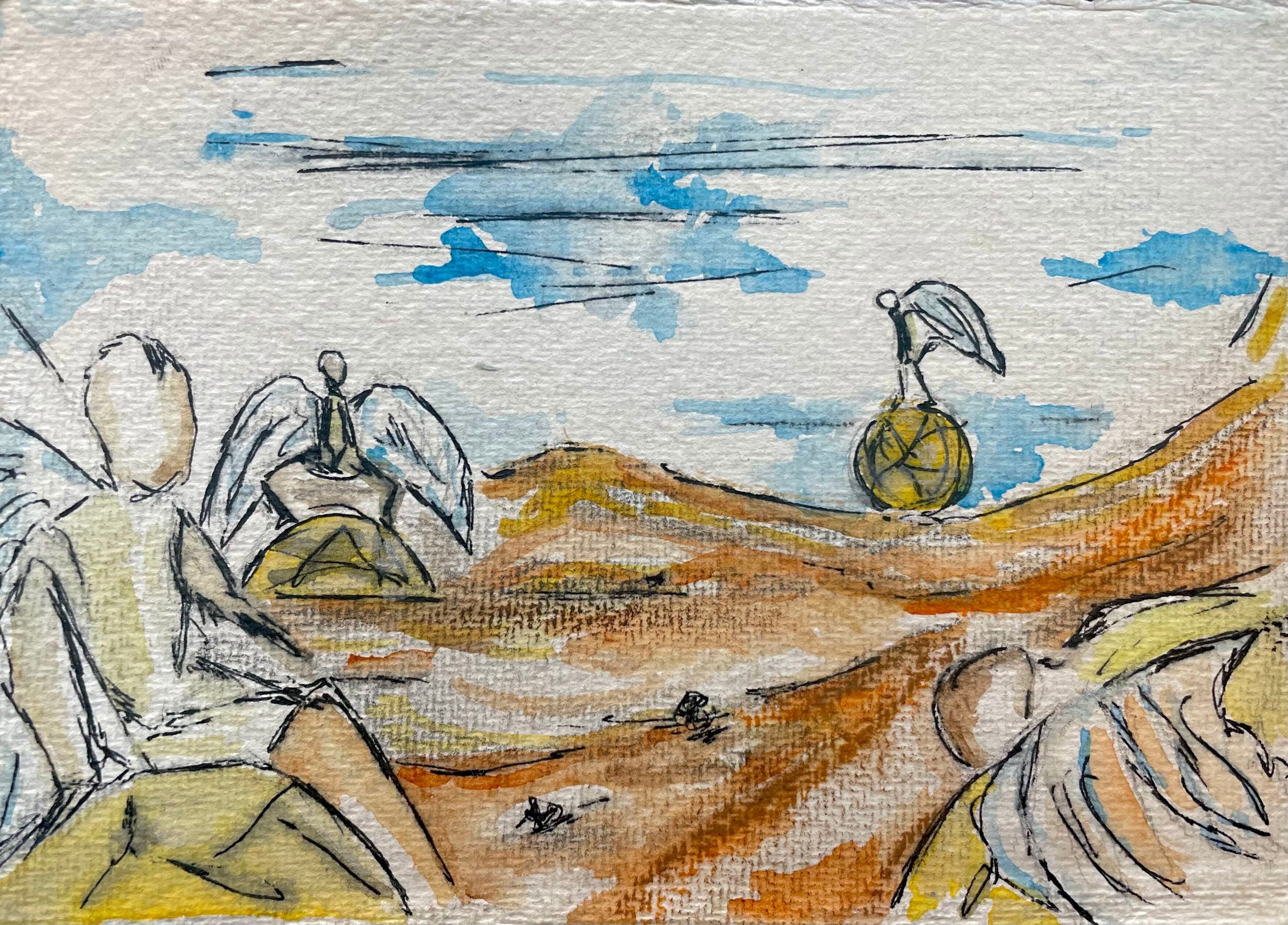 After three days the wind stops and the baby angels come out and realise that not only, they can’t no longer fly, but also they can’t protect their stars as their wings have gaps.